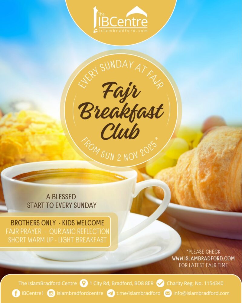 Brothers Fajr Breakfast ClubFrom Sun 2nd November at Fajr. Prayer – Quran Reflection – Short Warm up – Light BreakfastBrothers Fajr Breakfast Club Part 9 – The Excellence of TradeThe weekly reading of hadith will restart on Tuesday after Isha prayer 7:15pm. By Imam Masood Chowdhury – All Welcome! #bestofbesthadithPart 9 – The Excellence of Trade A Journey Towards Halal InvestingREVISED DATE: by Pontus Bilal Selander this Monday 27 October after ISHA (7.15pm) All Welcome! FREEA Journey Towards Halal Investing Visit My Mosque 2025Open Invitation Sunday 5 October 1.15pm to 2.30pm – All Non Muslims Welcome! Free LunchVisit My Mosque 2025 1 2 3 … 44 Next »