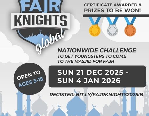 Fajr Knights is back inshAllah! Sun 21 /12/25 to Sun 4/1/26. Please register your child here. One form per child please. https://bit.ly/FajrKnights2025IB Read More
