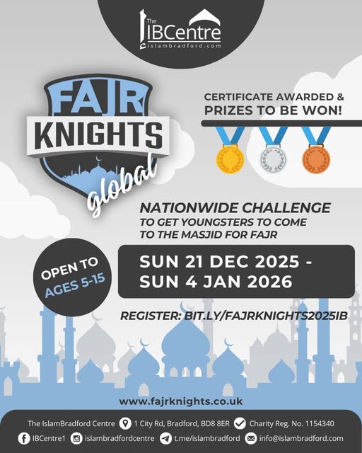 Uncategorized By Abdul Akhunzada December 16, 2025 0 Comments Fajr Knights Fajr Knights is back inshAllah! Sun 21 /12/25 to Sun 4/1/26. Please register your child here. One form per child please. https://bit.ly/FajrKnights2025IB