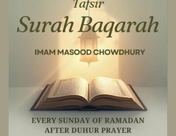 February 3, 2026 0 Comments Tafsir Surah Al Baqarah Tafsir Surah Al Baqarahby Imam Masood Chowdhury – Every Sunday of Ramadan after Duhur Prayer – 12.30pm till 1pm – All Welcome! Read More