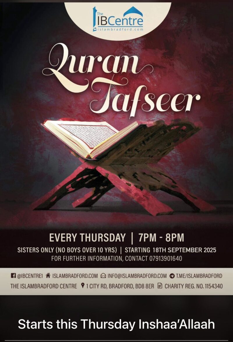 Uncategorized By Abdul Akhunzada September 5, 2025 0 Comments Sisters Quran TafseerEvery Thursday 7pm